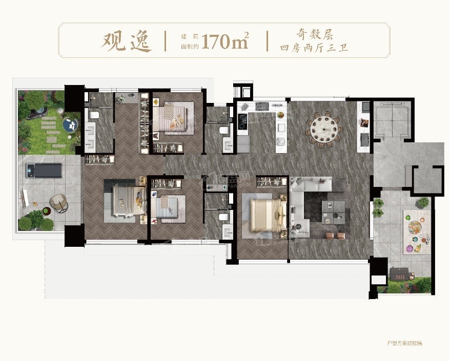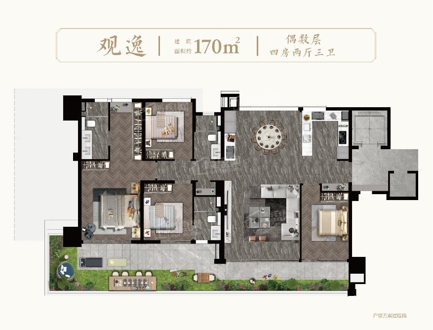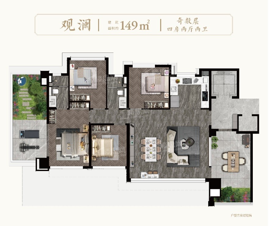 主推建面约148-170㎡的4居,现在均价是40000元/㎡